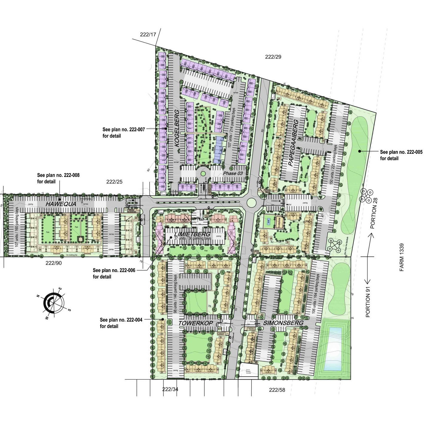 605 apartments over 6 developments